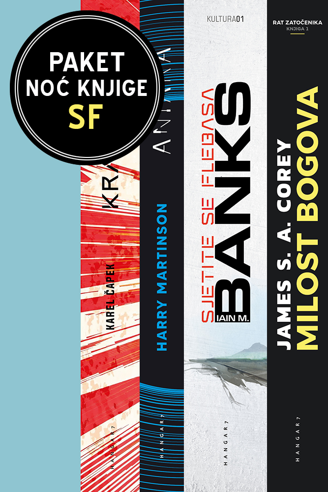 Povodom Noći knjige 2026. četiri vrhunska SF djela. Sjetite se Flebasa, prvi roman škotskog autora Iaina M. Banksa s kojim je začeta nova svemirska opera i ciklus o Kulturi. Milost bogova, prvi dio nove trilogije autora Prostranstva, Jamesa S. A. Coreyja. Klasik književne fantastike Krakatit Karela Čapeka, autora R.U.R.-a te Aniara nobelovca Harryja Martinsona o životu na generacijskom brodu koji izgubljen pluta prema dalekom svemiru…